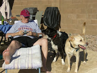Rob is participating in the Ironman Arizona Triathlon again on Sunday 4/13/08. His race starts with a 2.4 mile swim at 7:00 am, then a 112 mile bike ride and lastly a 26.2 mile run. Lat year he finished the race in 14 hours 49 minutes (9:49 pm). If you would like to track him live throughout the day go to http://www.ironman.com/ and click the IronmanLive tab in the upper right corner. We will be staying at a downtown Tempe hotel during the race. So while Rob is out racing we can go back to the room for a nap or a movie. :)